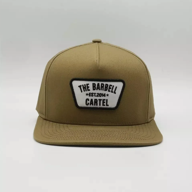 หมวกเบสบอล5แผงมีโครงสร้างทอโลโก้ผ้าฝ้าย