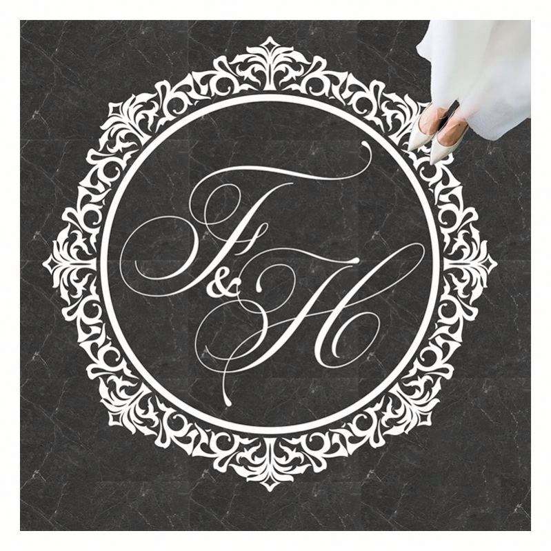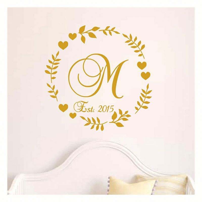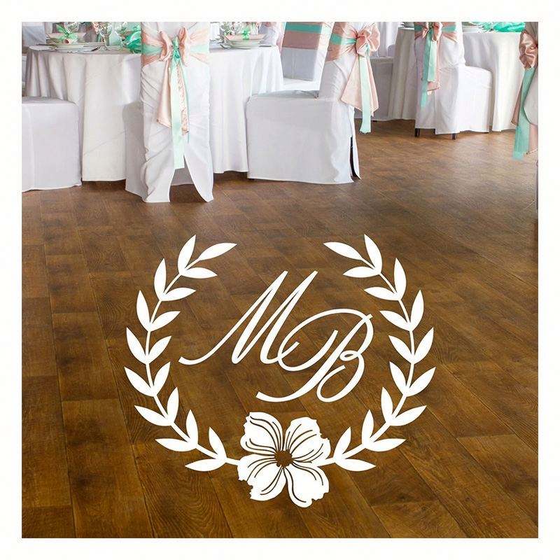 สติ๊กเกอร์ติดพื้นไวนิลสำหรับงานแต่งงาน ลายพวงหรีด ตัวอักษรย่อ ชื่อเจ้าสาวเจ้าบ่าว แบบมันเงา ลอกออกได้