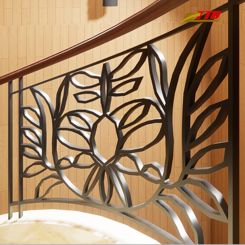 ราวบันไดเหล็กดัดแบบสั่งทำพิเศษ, ราวบันไดตกแต่งภายในแบบตีขึ้นรูปด้วยมือพร้อมลูกกรงประดับ, สีดำคลาสสิก