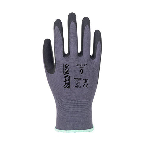 ถุงมือนิรภัยสำหรับอุตสาหกรรมถุงมือทำงานทำจากโฟมไนไตรล์โฟมเคลือบเคลือบผ่านการรับรอง EN388 XL ออกแบบได้ตามต้องการ