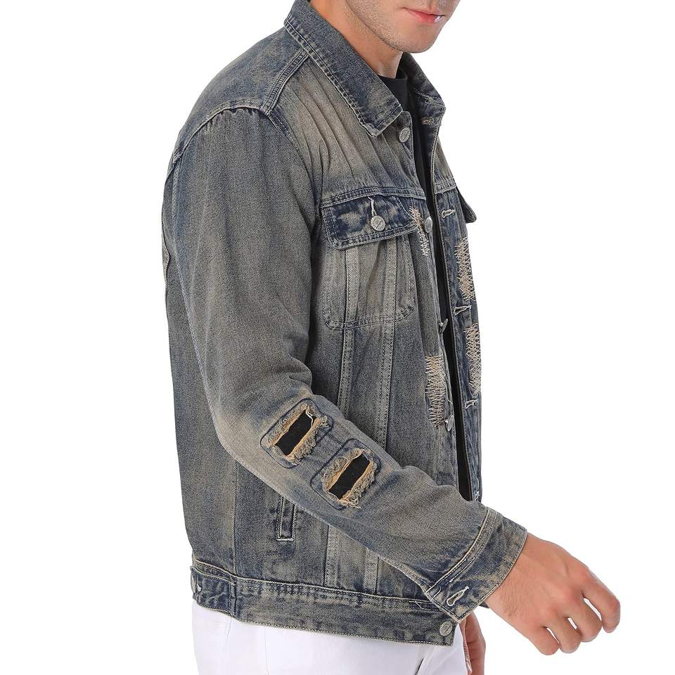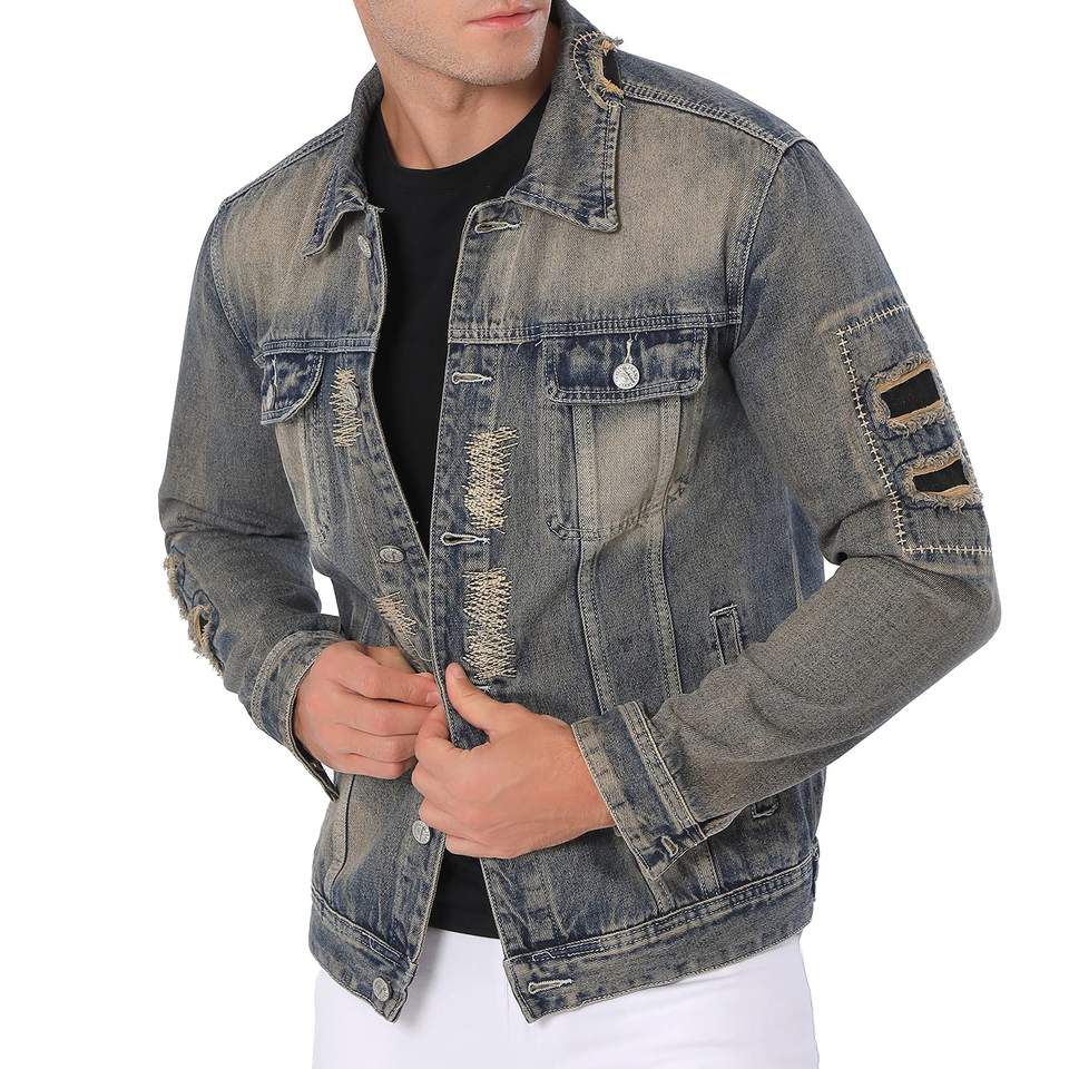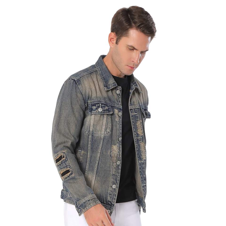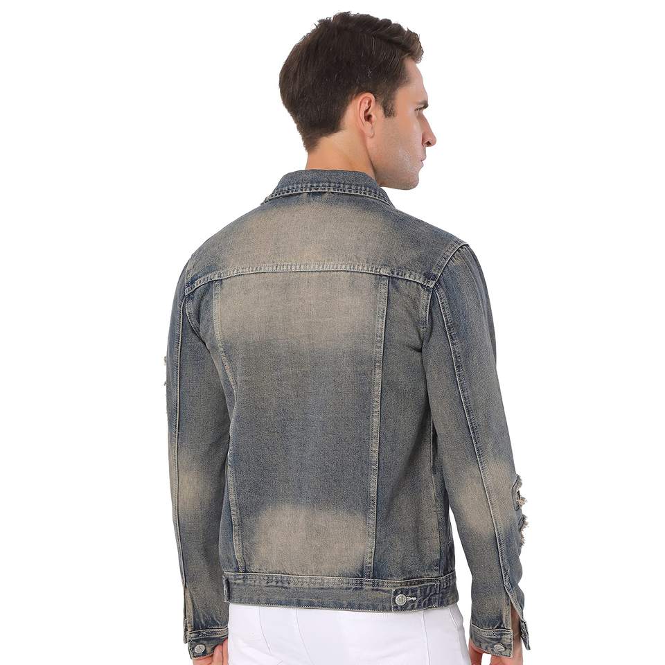 แจ็คเก็ตยีนส์วินเทจสไตล์ Y2K แบบทำเก่า ขาดเซอร์ๆ สำหรับผู้ชาย