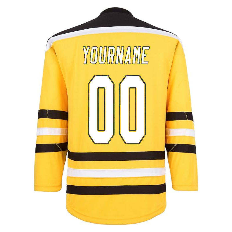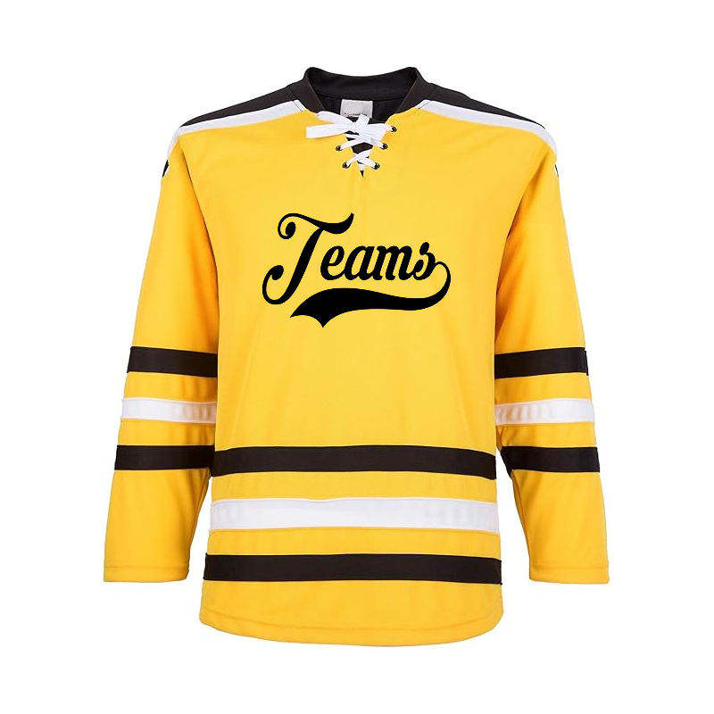 เสื้อฮอกกี้น้ำแข็งสีเหลืองแบบกำหนดเอง ชุดทีมมืออาชีพ ลายทางสีดำขาว ชุดกีฬา ชุดกีฬาฮอกกี้แบบสั่งทำพิเศษ