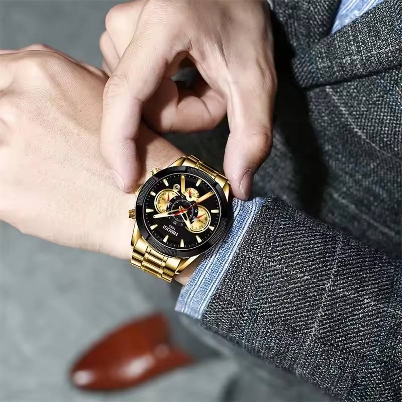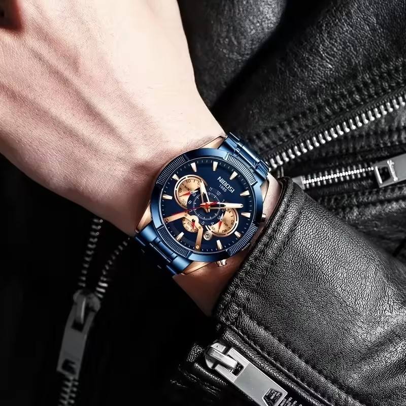 นาฬิกาควอตซ์ Nibosi 2379 รุ่นปี 1985 ออกแบบโลโก้ของคุณเองได้ นาฬิกาข้อมือผู้ชาย แสดงวันที่ โครโนกราฟ สำหรับนักธุรกิจ