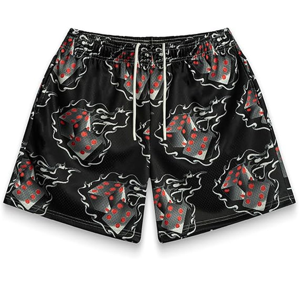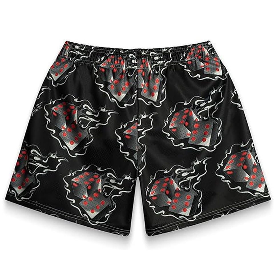 เสื้อบาสเก็ตบอลแบบกลับด้านได้สำหรับเยาวชน ลายพิมพ์แบบซับลิเมชั่น กางเกงบาสเก็ตบอลทรงสปอร์ตขนาดใหญ่พิเศษ 6XL ลายเปลวไฟ เอวกลาง