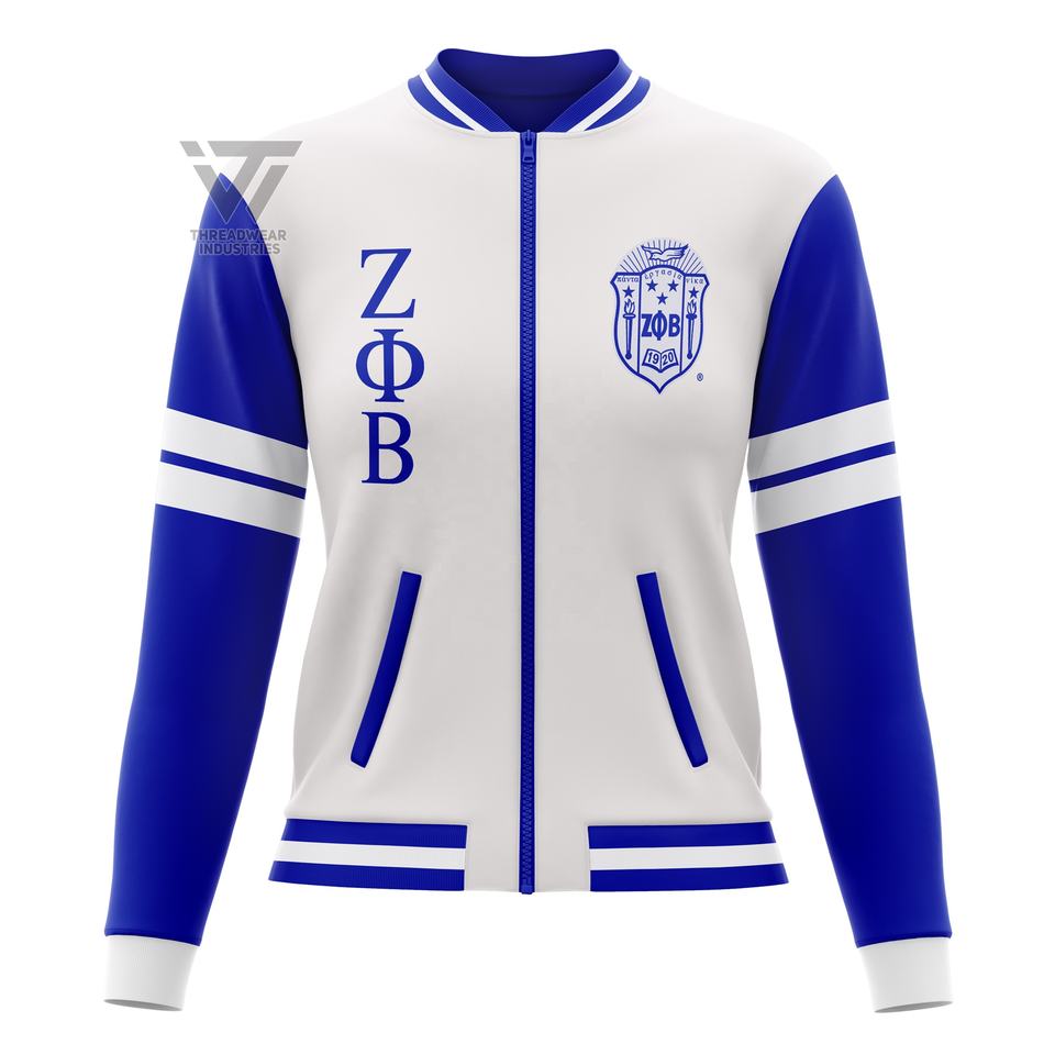 แจ็กเก็ตบอมเบอร์ปักลาย Sorority รุ่นเบต้า Zeta แบบกำหนดเอง