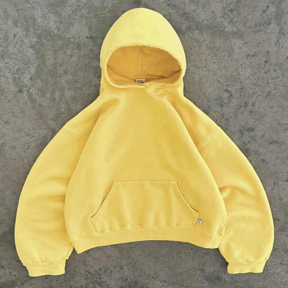 น้ำหนักผ้า 420 กรัม: น้ำหนักผ้า 420 กรัม ให้ฮู้ดดี้ที่หนา ทนทาน และอุ่นสบาย เหมาะสำหรับสภาพอากาศในฤดูหนาว