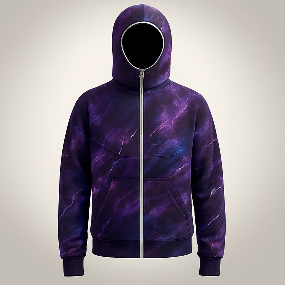 เสื้อมีฮู้ดแนวสตรีทเสื้อกราฟิกมีซิปโอเวอร์ไซส์เสื้อแจ็กเก็ตมีฮู้ดเข้ารูปแบบสายฟ้าผ่า