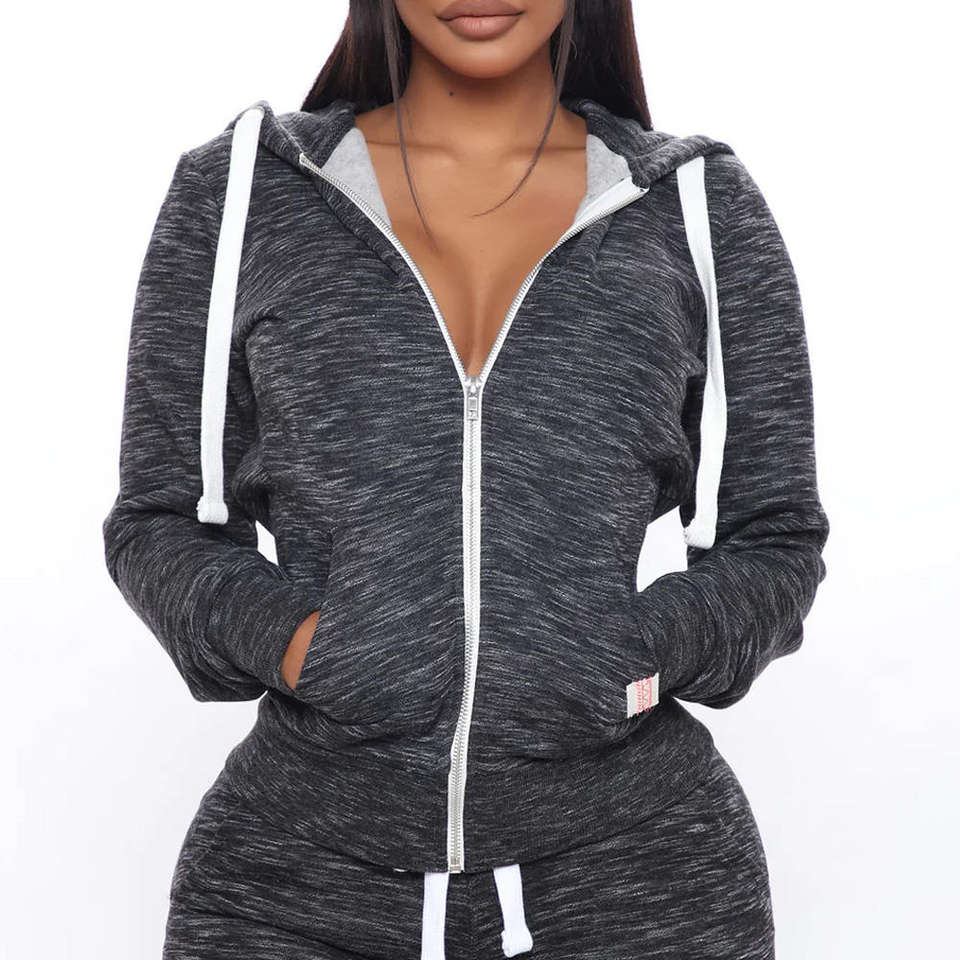 ชุดแทรคสูทแบบมีซิปสั่งทำพิเศษ สตรีทแวร์ ชุดสองชิ้น เสื้อฮู้ดมีซิปเต็มตัว / ผ้าฝ้ายฟลีซ แฟชั่นสตรีทแวร์ ชุดแทรคสูท