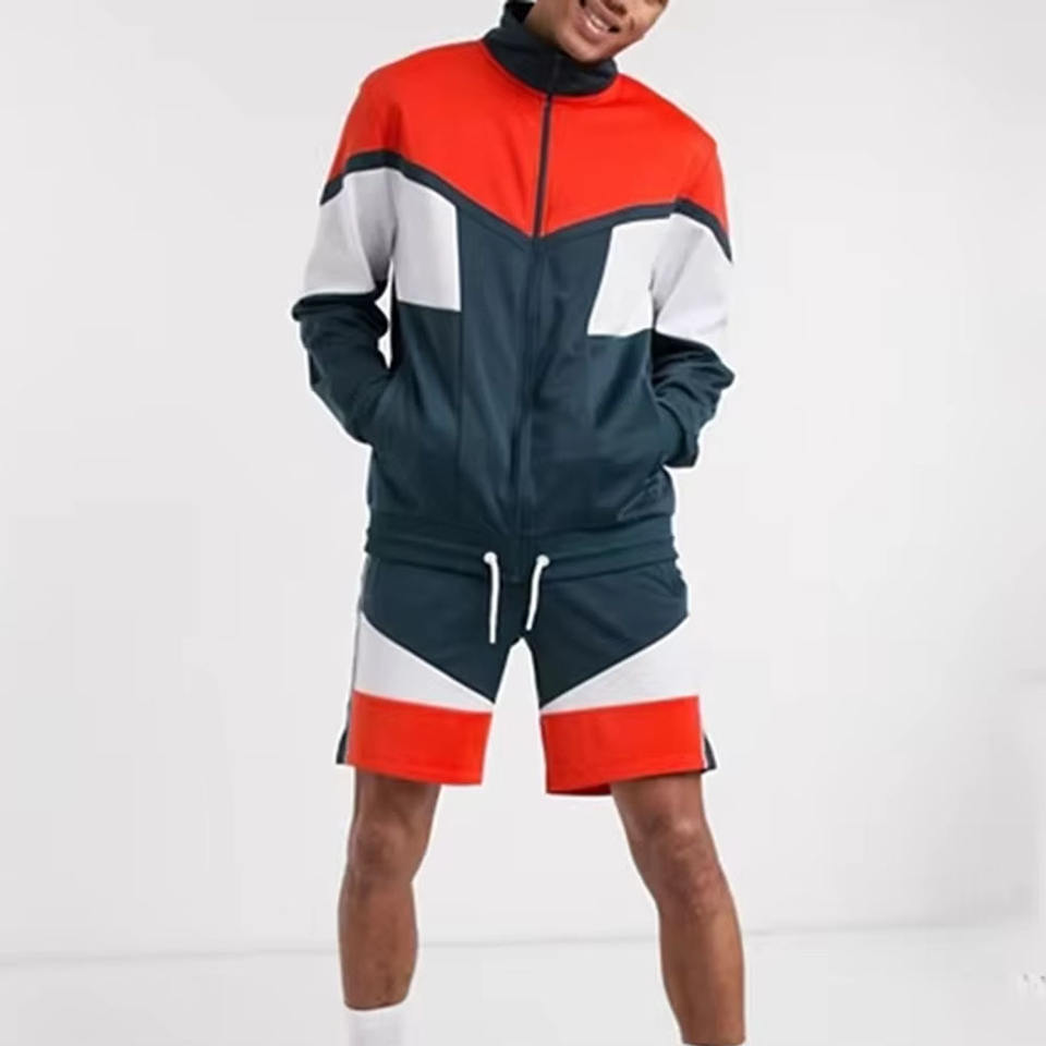 ชุดวอร์มไนลอนน้ำหนักเบาแบบซิปสำหรับผู้ชาย ทรงหลวมใส่สบาย เหมาะสำหรับฤดูร้อน ชุดเซ็ตเสื้อแจ็คเก็ตกันลมและกางเกงขาสั้นสองชิ้น