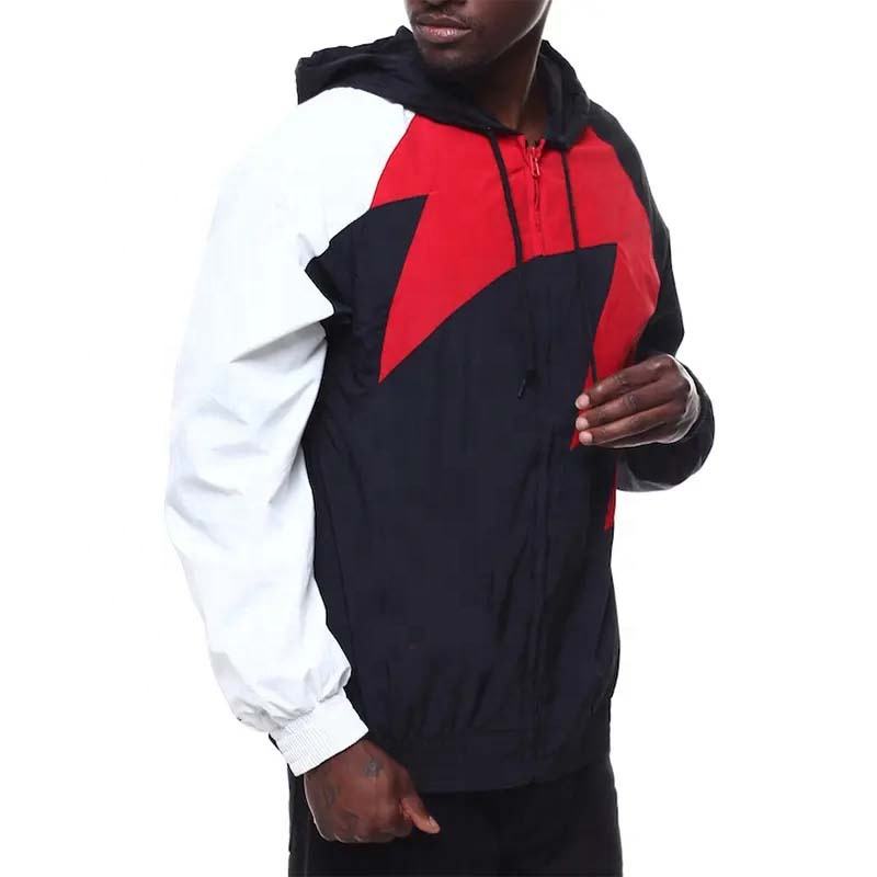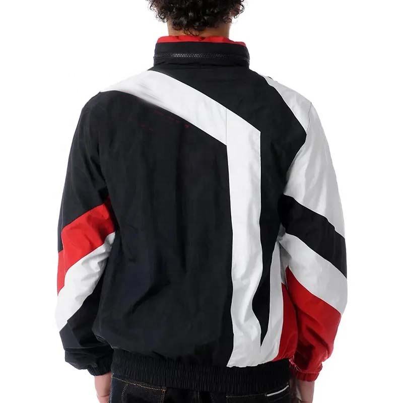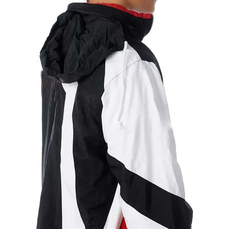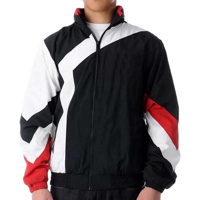 เสื้อแจ็คเก็ตฟุตบอลแบบซิปย้อนยุคพร้อมแถบตกแต่ง แจ็คเก็ตผ้าไนลอนน้ำหนักเบาแบบมีซับใน แจ็คเก็ตกันลมสำหรับผู้ชาย