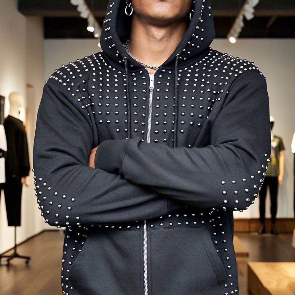 เสื้อมีฮู้ดสำหรับผู้ชายประดับพลอยเทียมแบบกำหนดเองไม่มีสายมีฮู้ดสำหรับผู้ชายโอเวอร์ไซส์วินเทจ