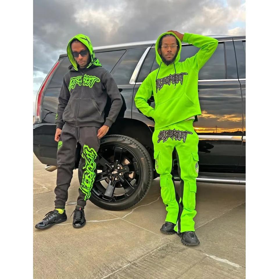 ชุดวอร์มคลุมท้องแบบมีซิป พิมพ์ลายตามสั่ง ลวดลายย้อมสีแบบแอซิด ปักลาย апплика งานปักแบบดิสเทรส เสื้อฮู้ดดี้ ชุดวอร์มแบบจ็อกกิ้ง กางเกงวอร์มทรงบาน