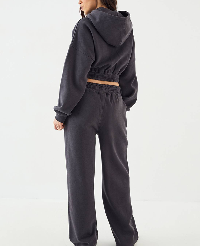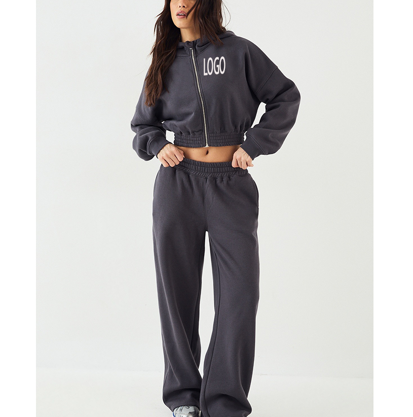ชุดวอร์มผู้หญิงแบบมีฮู้ดซิป ผ้าโพลีเอสเตอร์ เอวยางยืดสูง ชุดออกกำลังกาย รับผลิตตามแบบ (OEM) ชุดวิ่งออกกำลังกายเนื้อผ้าหนา