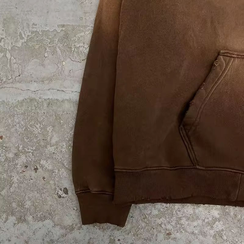 เสื้อฮู้ดซิปแบบสั่งทำพิเศษ ผ้าฝ้ายเฟรนช์เทอร์รี่ สเวตเชิร์ตแบบทางการสำหรับฤดูหนาว สไตล์วินเทจ ล้างสีแบบแอซิดวอช สำหรับผู้ชาย