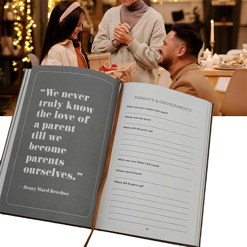 สมุดบันทึกครอบครัวแบบดั้งเดิมและพ่อเล่าเรื่องราวของคุณให้ฟัง