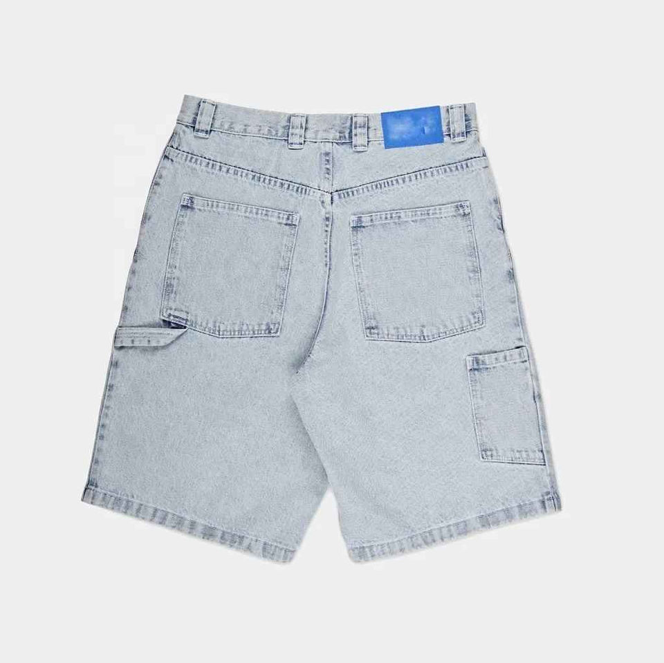 กางเกงยีนส์ขาสั้นทรงหลวมสำหรับผู้ชาย ผ้าฝ้าย 100% ผ้าไม่ทอ สไตล์ไฮสตรีท ปิดด้วยเชือกผูก และแห้งเร็ว