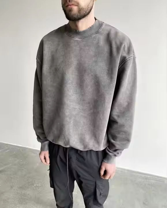 เสื้อสเวตเตอร์คอตตอนผสมแบบสวมหัวโอเวอร์ไซส์ไซส์ล้างได้แนวสตรีทแวร์ผ้าฝ้ายเทอร์รี่สำหรับฤดูหนาว