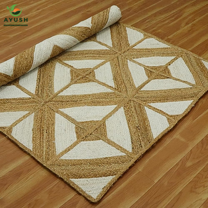 พรมสั่งทำสำหรับห้องนั่งเล่นทำจากวัสดุปอกระเจาและผ้าฝ้าย100% พรมงานฝีมือที่เป็นมิตรต่อสิ่งแวดล้อมแบบปรับแต่งได้
