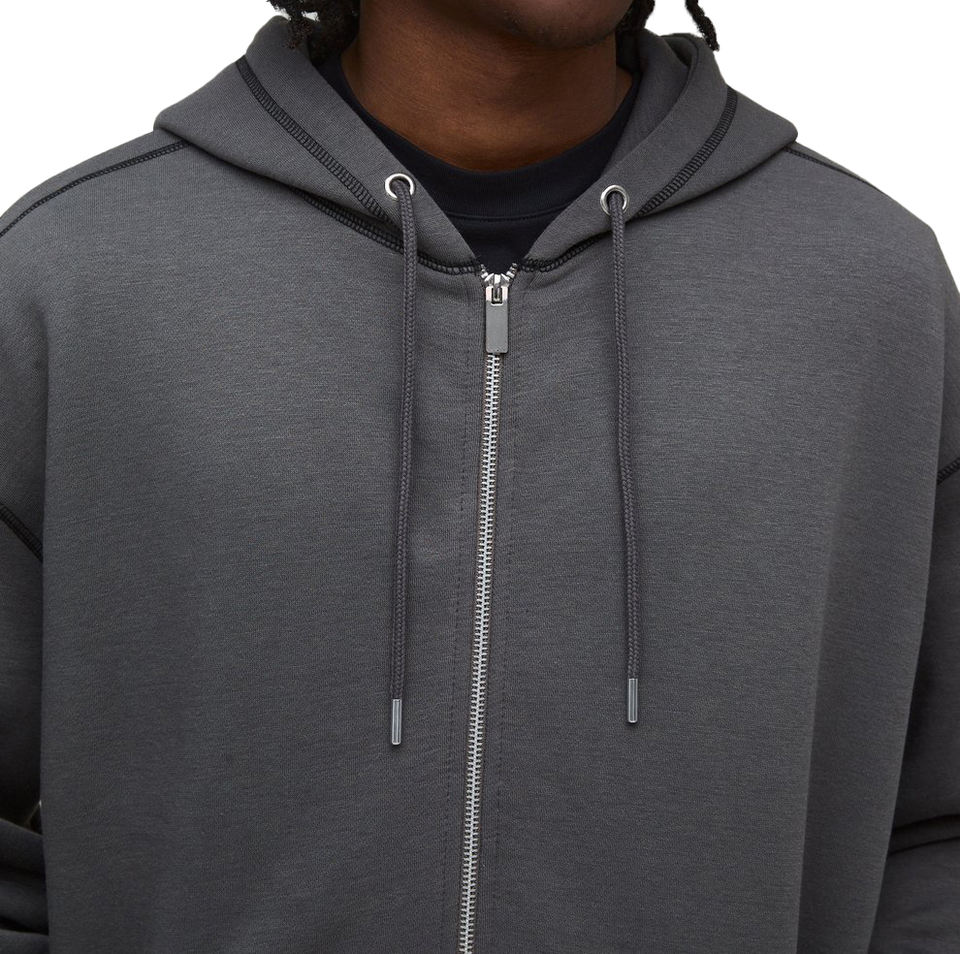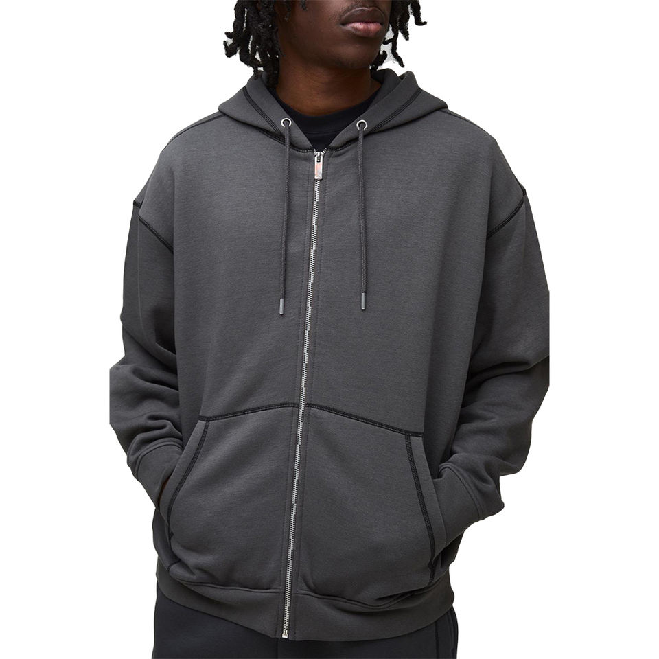 Custom Solid Charcoal Grey Contrast Stitch 100% Cotton Men's Winter Fleece Pullover Hoodies with Kangaroo Pocket Drawstring ODM