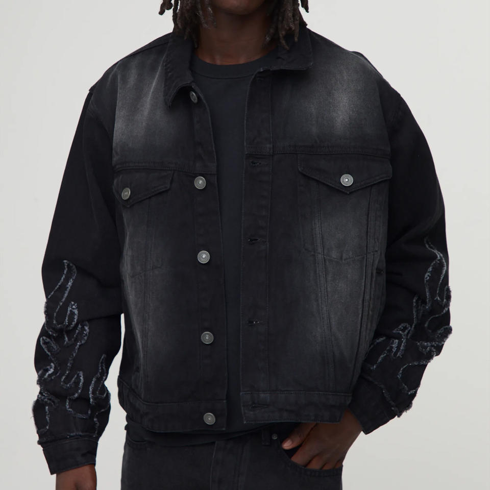 แจ็คเก็ตยีนส์สั่งทำพิเศษ แจ็คเก็ตโอเวอร์ไซส์ แจ็คเก็ตยีนส์สีดำ สไตล์สตรีทแวร์ สำหรับผู้ซื้อจากสหรัฐอเมริกา ทั้งชายและหญิง