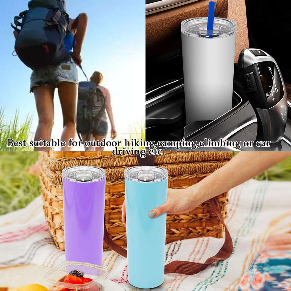 Custom Design 20oz Skinny White Straight Sublimation Blanks Stainless Steel Tumblers with Lid Thermal Insulation Eco-Friendly