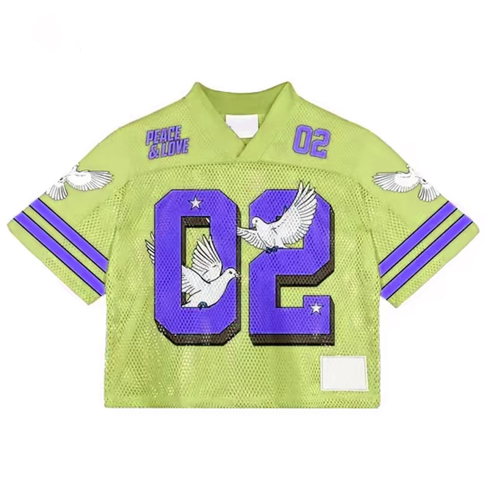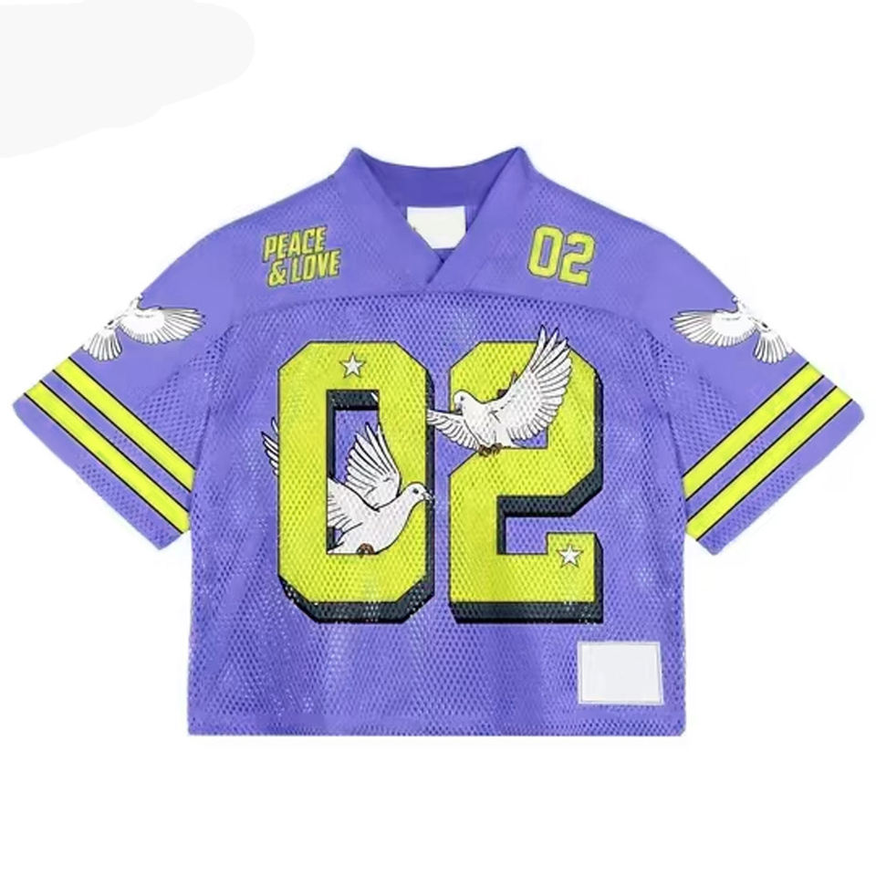 เสื้อกันเหงื่อแนวสตรีทแวร์ผ้าเจอร์ซีย์แนวฮิปฮอปฤดูร้อน100% ผ้าโพลีเอสเตอร์สำหรับเล่นฟุตบอลอเมริกัน