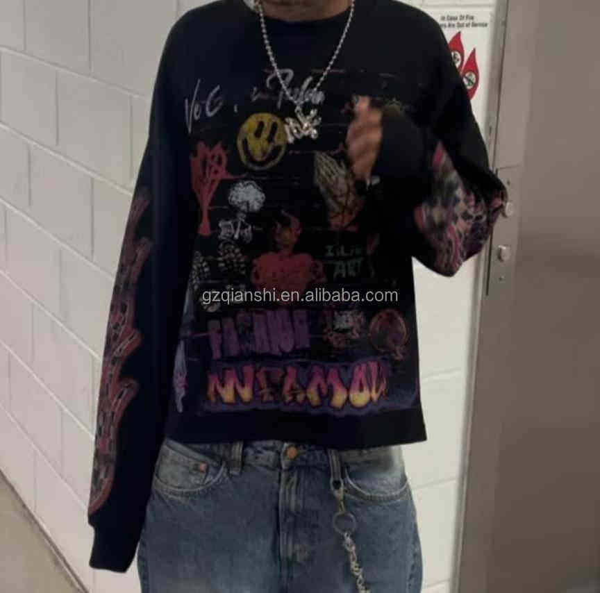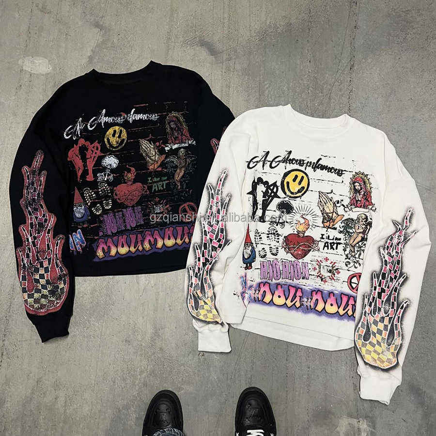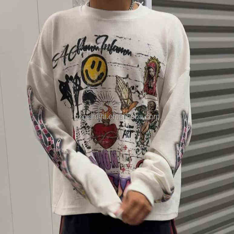 เสื้อยืดคอกลมทรงหลวมใส่ได้ทั้งชายและหญิงทรงหลวมพอดีตัวผ้าฝ้าย100% ลายกราฟิกเฮฟวีเวตดีไซน์และโลโก้ตามสั่ง
