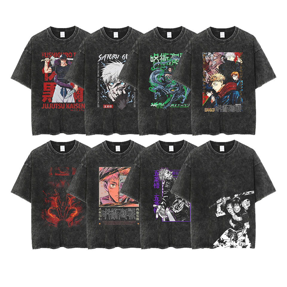 เสื้อยืดผ้าฝ้าย100% ลายอะนิเมะแบบวินเทจสีดำโอเวอร์ไซส์ออกแบบโลโก้ได้ตามต้องการ