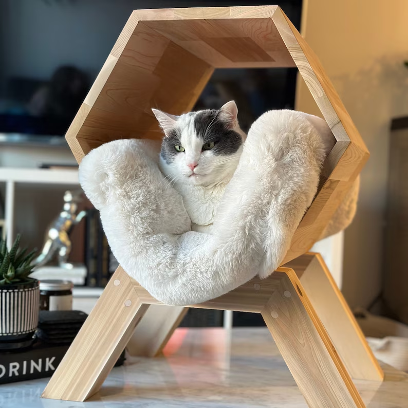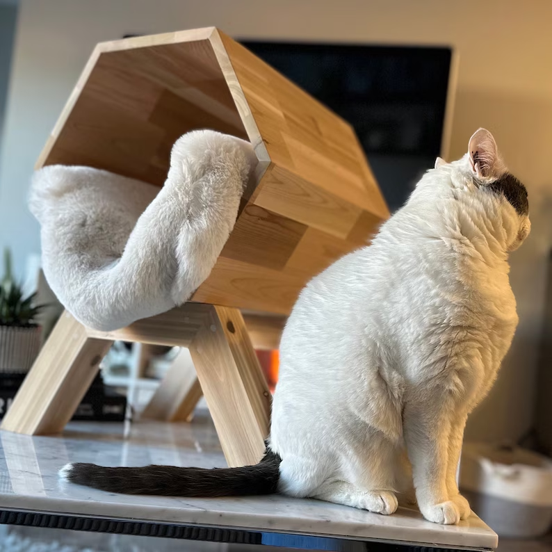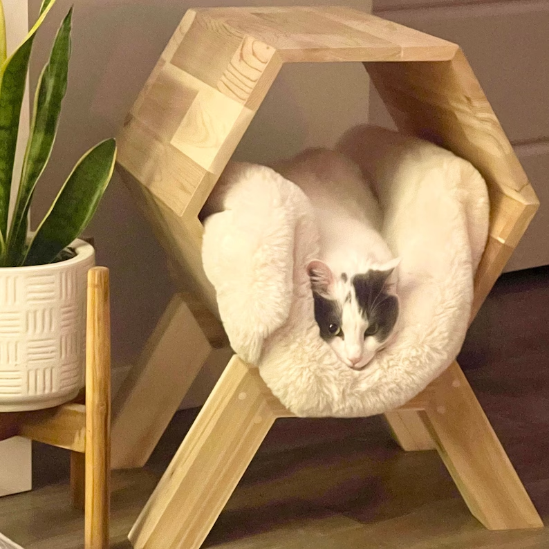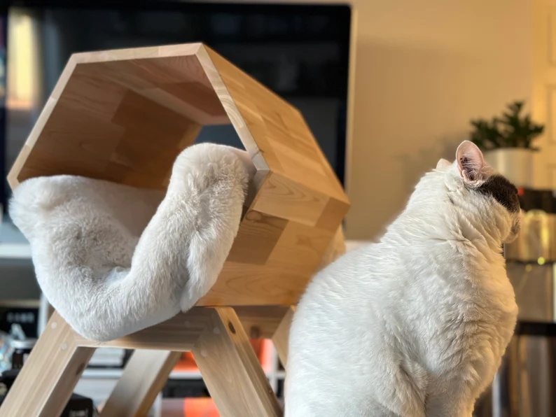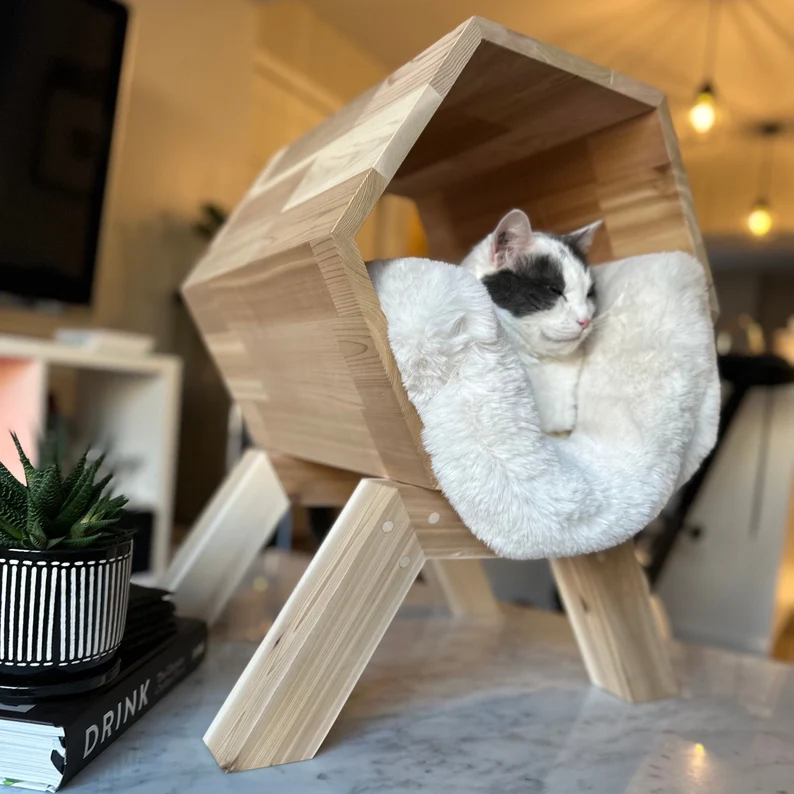 ที่นอนแมวแบบยกพื้นทรงหลุมต้นไม้ ทำจากไม้สน คุณภาพดี เป็นมิตรกับสิ่งแวดล้อม หรูหรา ทนทาน สไตล์เรียบง่าย ผลิตตามสั่งจากโรงงาน