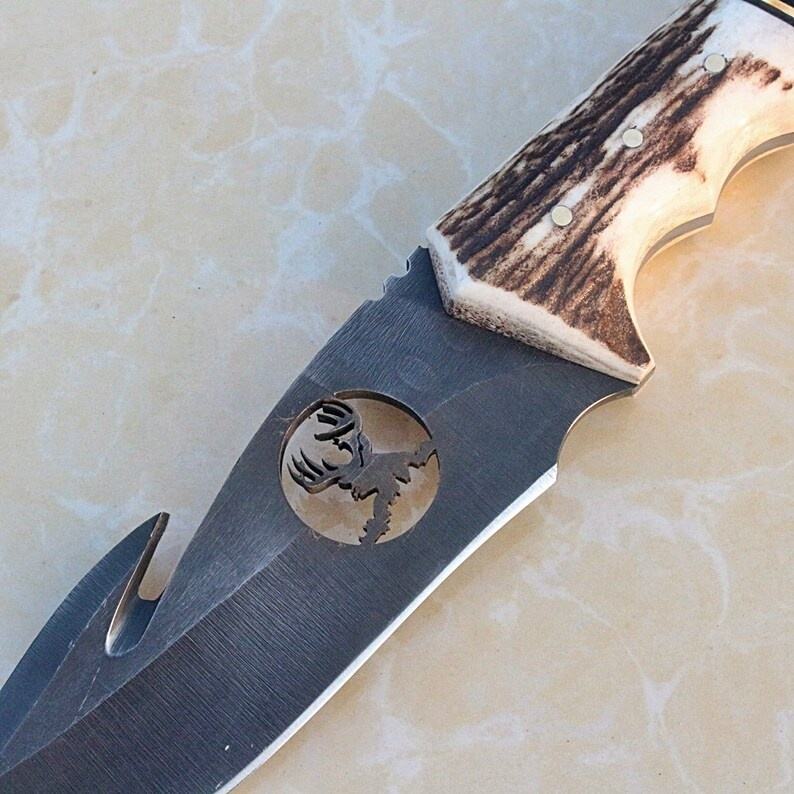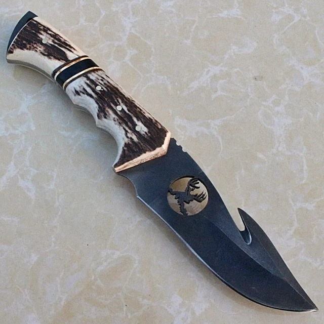 Custom Handmade Pakistani J2 Stainless Steel Hunting Knife with Stag Horn Handle and Fine Leather Sheath Gift for Him Trending