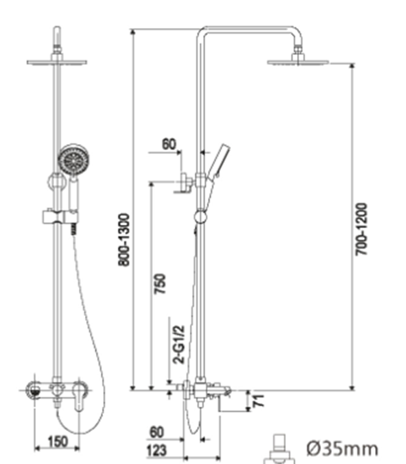 SHOWER SET, hot cold faucets