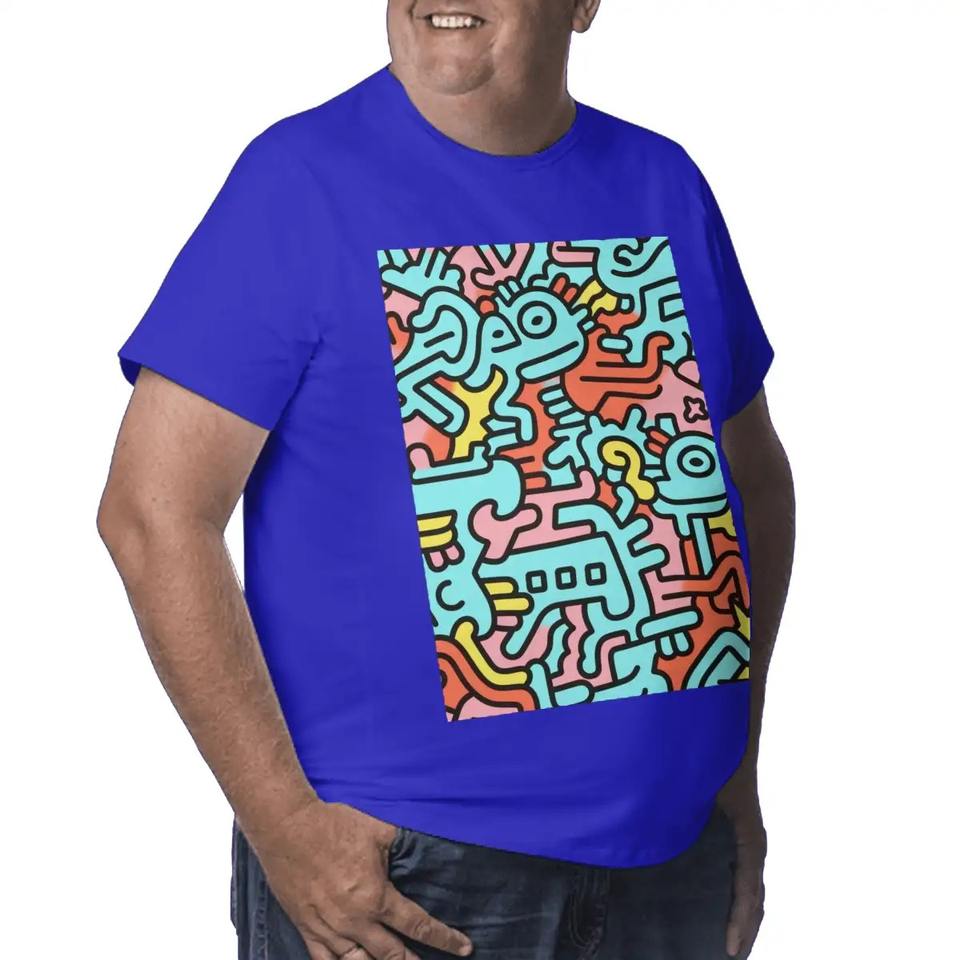เสื้อยืดสตรีทแวร์สำหรับผู้ชายขนาดพลัสไซส์ออกแบบลายพื้นผ้าฝ้าย100% พิมพ์ลายตัดกัน