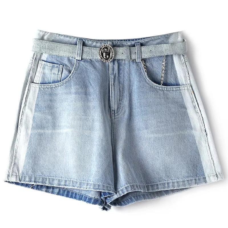 กางเกงยีนส์ขาสั้นทรงสกินนี่เอวสูง ระบายอากาศได้ดี สไตล์โมโตและไบค์เกอร์ สำหรับผู้หญิง ผ้าฝ้าย 100%