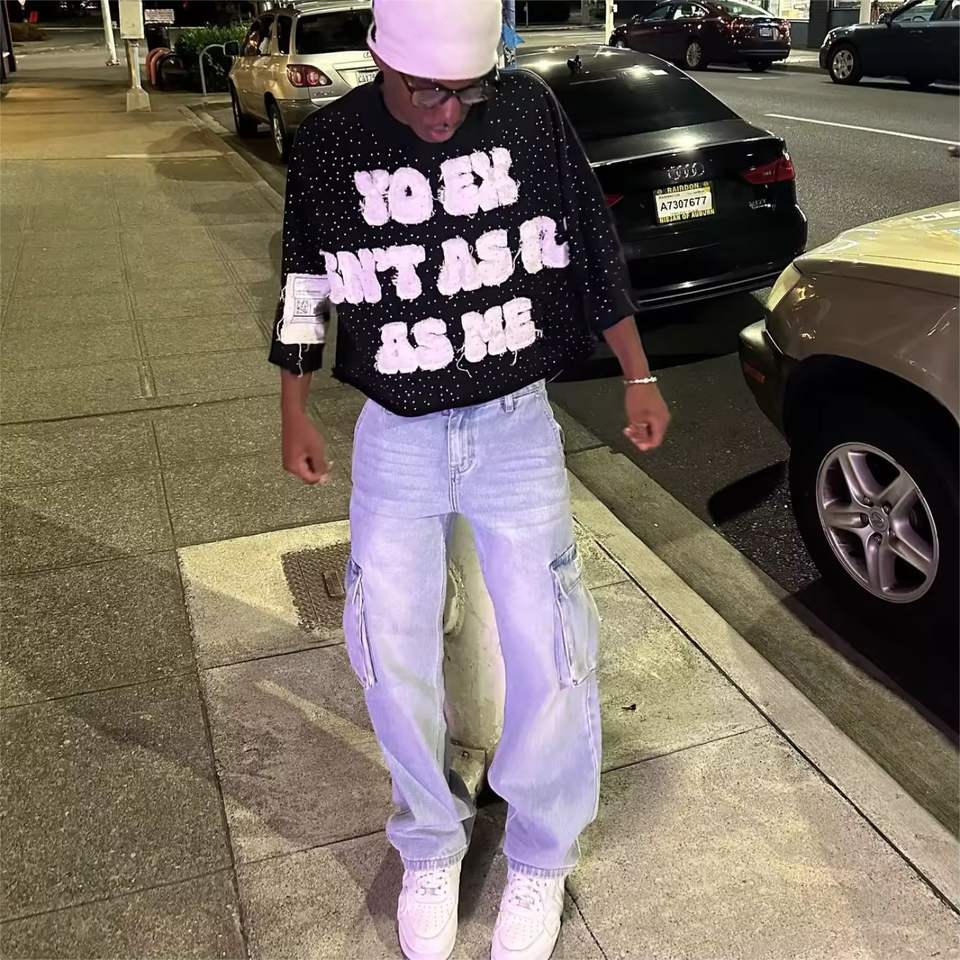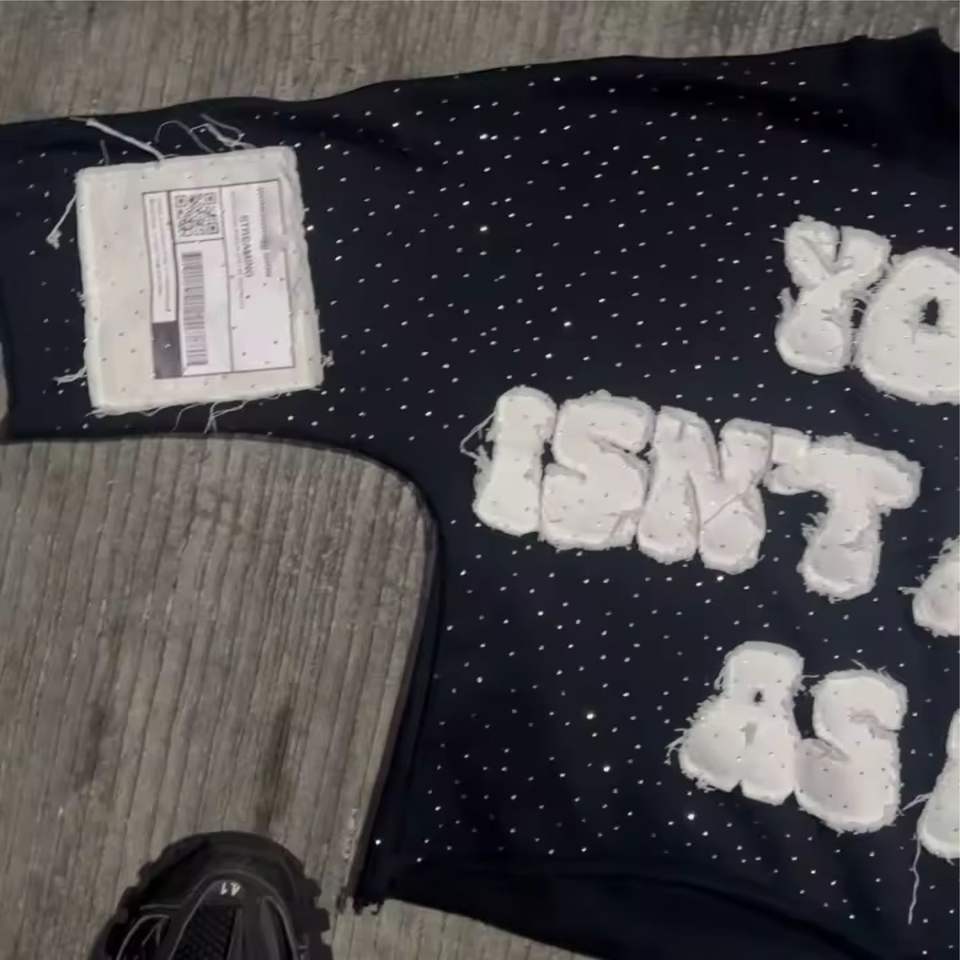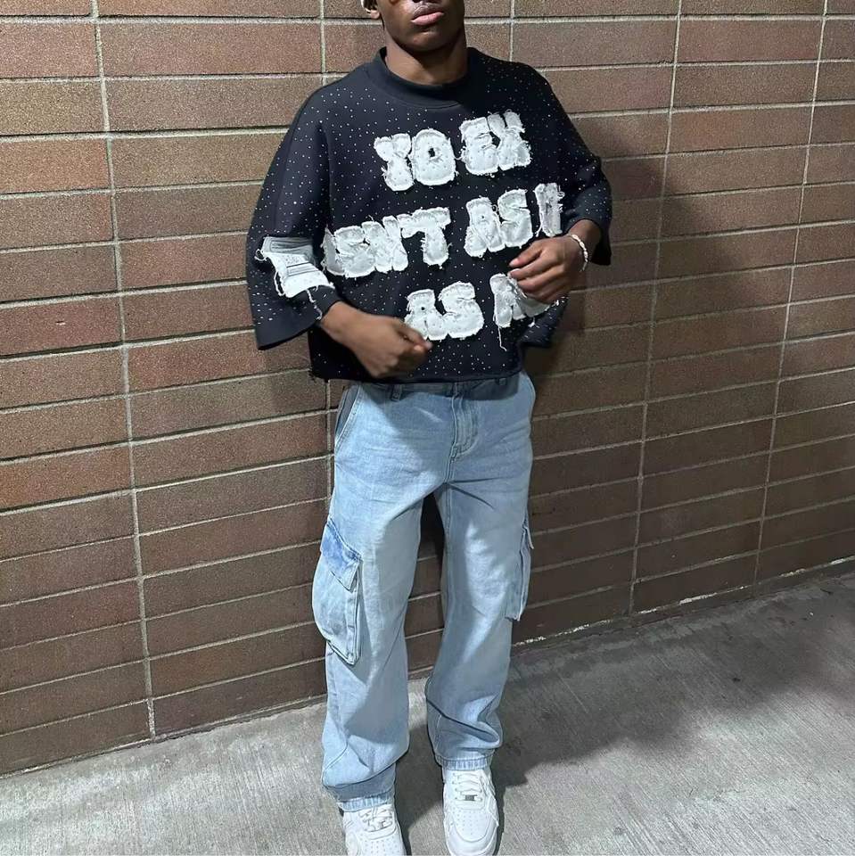 เสื้อยืดสำหรับผู้ชายเสื้อยืดผ้าฝ้าย100% ปักลายปักลายด้วยพลอยเทียมติดฉลากได้ตามต้องการ