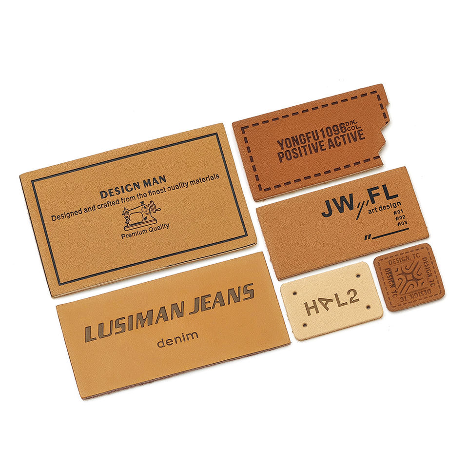 ป้ายกำกับหนังแบบกำหนดเองป้ายหนัง PU ผ้ายีนส์เทียมโลโก้หมวกกระเป๋าหนังแผ่นปะหนังกางเกงยีนส์สำหรับเสื้อผ้ากระเป๋าผ้ายีนส์