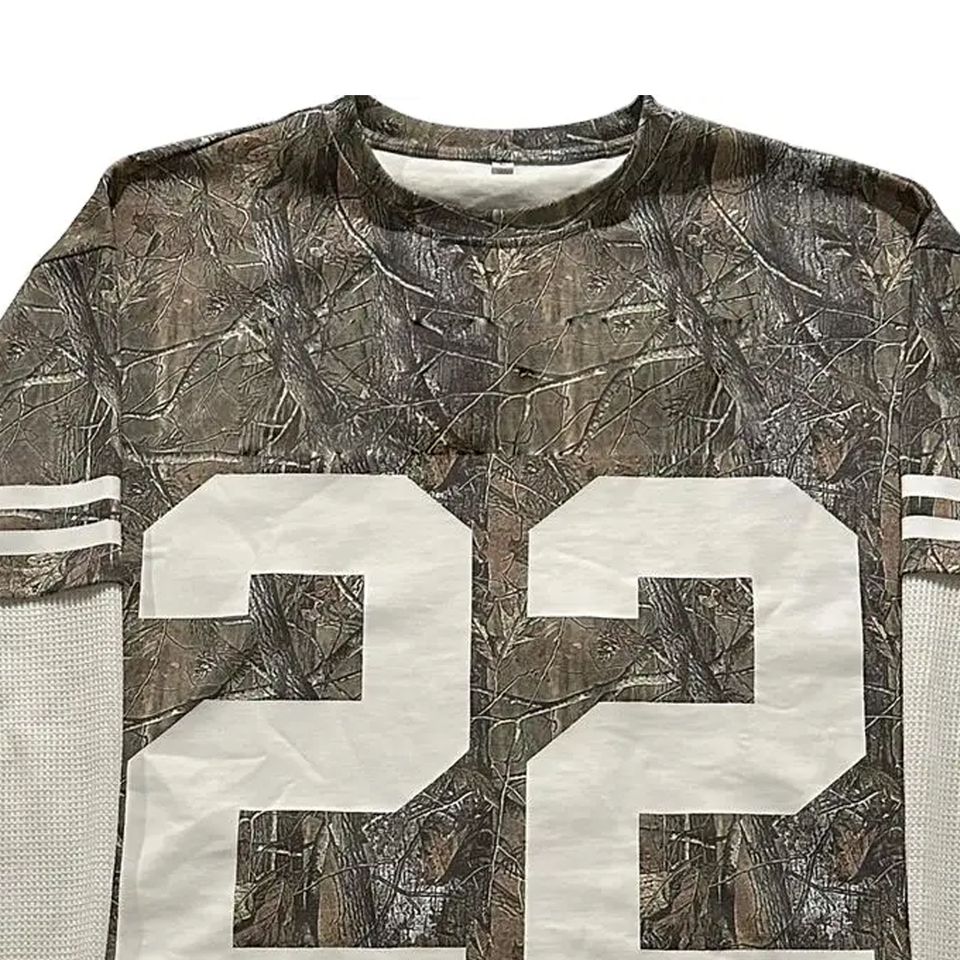 Custom logo 100% Cotton Cut Boxy Sew Tee DTG Printed logo Vintage Washed Jungle Print Paneled Double Layer Long Sleeve T-Shirt