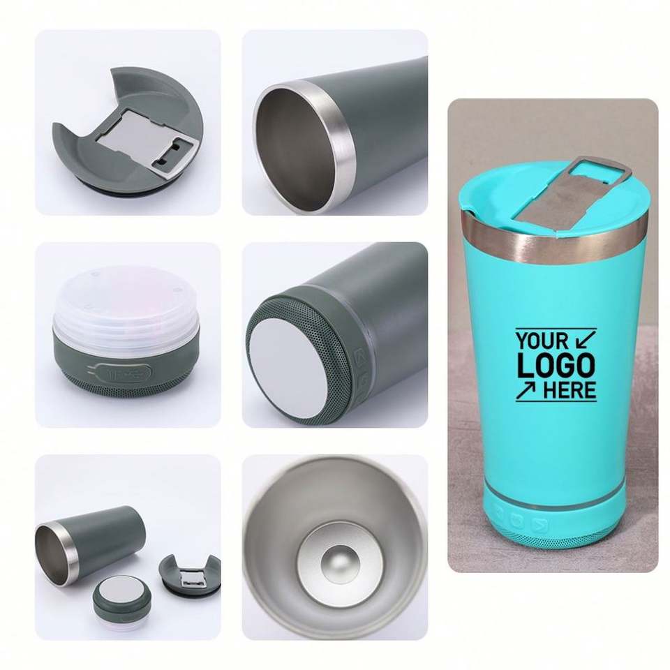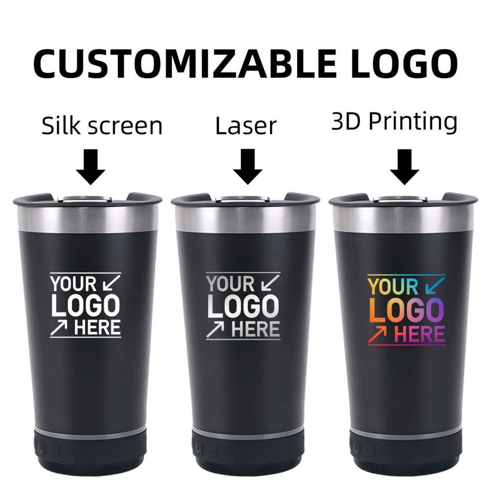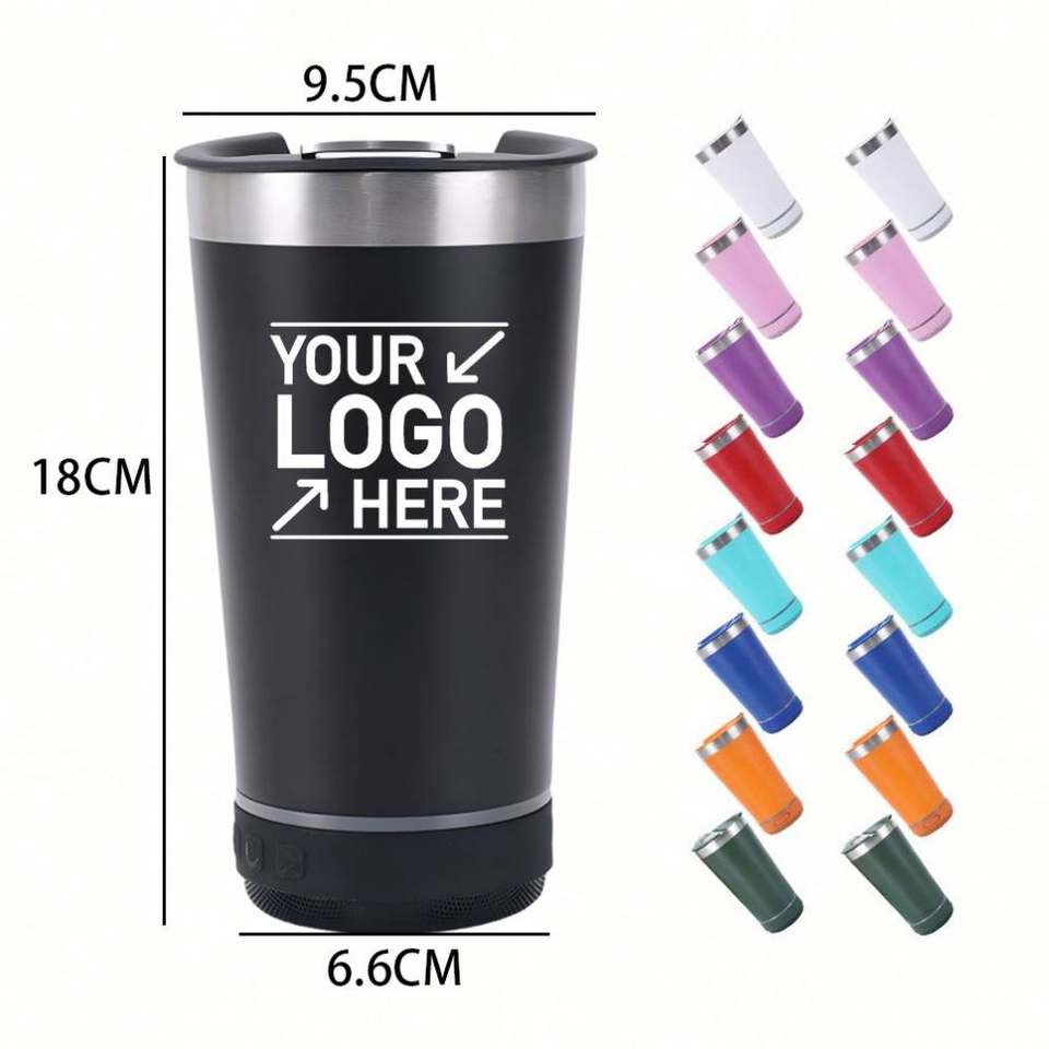 แก้วน้ำเก็บความเย็นสุญญากาศสองชั้น สแตนเลส 16 ออนซ์ พร้อมลำโพงในตัว พิมพ์โลโก้ได้ เหมาะสำหรับเดินทาง แคมป์ปิ้ง ฟังเพลง ดื่มเบียร์