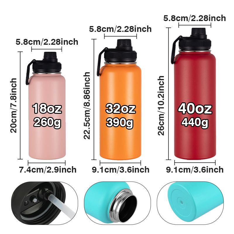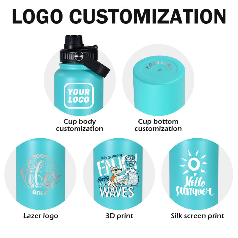 Custom logo 18oz 32oz Vacuum Flask Gym Insulated Double Wall Wide Mouth Sport Stainless Steel Water Bottle