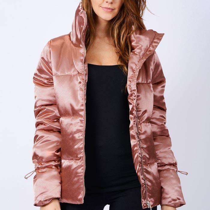 แจ็กเก็ตแบบขนเป็ดผ้าซาตินมีฮู้ดเสื้อแจ็คเก็ตผ้าสักหลาดมีซิปปิดสำหรับฤดูหนาว2024ออกแบบโลโก้ได้ตามต้องการ