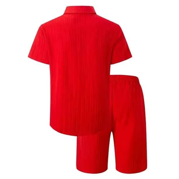 ชุดเซ็ตเสื้อยืดและกางเกงขาสั้นผ้าคอร์ดูรอยสีพื้นทรงโอเวอร์ไซส์สไตล์วินเทจรักษ์โลกสำหรับผู้ชายฤดูร้อนปี 2026