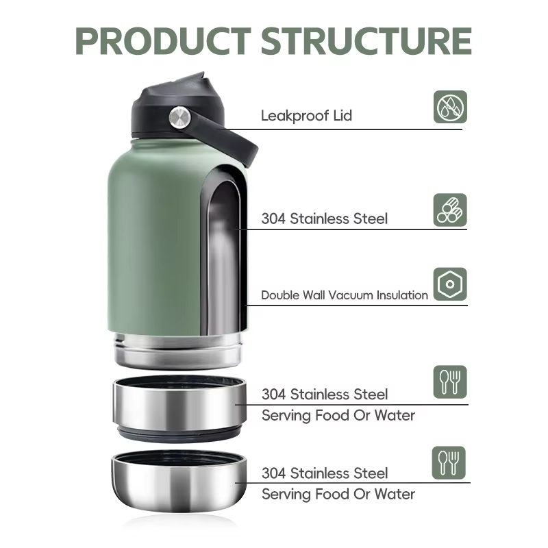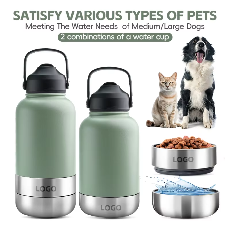 ขวดน้ำสุนัขเก็บความร้อนแบบ3 in 1ขนาด32ออนซ์แบบพกพาได้อุปกรณ์ป้อนสัตว์เลี้ยงใช้ในการเดินทางกลางแจ้งโลโก้แบบกำหนดเอง