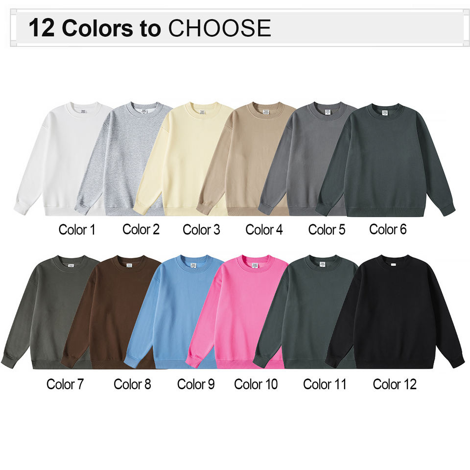 เสื้อสเวตเตอร์คอกลมแขนยาวผ้าฟลีซโอเวอร์ไซส์ผ้าฝ้าย345กรัมออกแบบโลโก้ได้ตามต้องการ