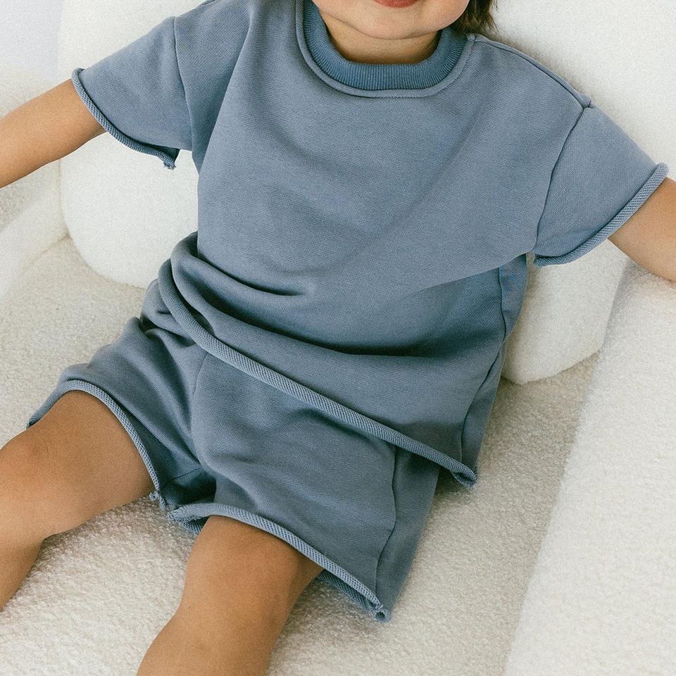 ชุดเสื้อผ้าเด็กทารกพิมพ์โลโก้เอง ชุดฤดูใบไม้ผลิ เสื้อยืดและกางเกงขาสั้นเนื้อนุ่ม ใส่สบาย สำหรับเด็กชายและเด็กหญิง ชุด 2 ชิ้น สำหรับเด็กแรกเกิด ทันสมัย ทนทาน