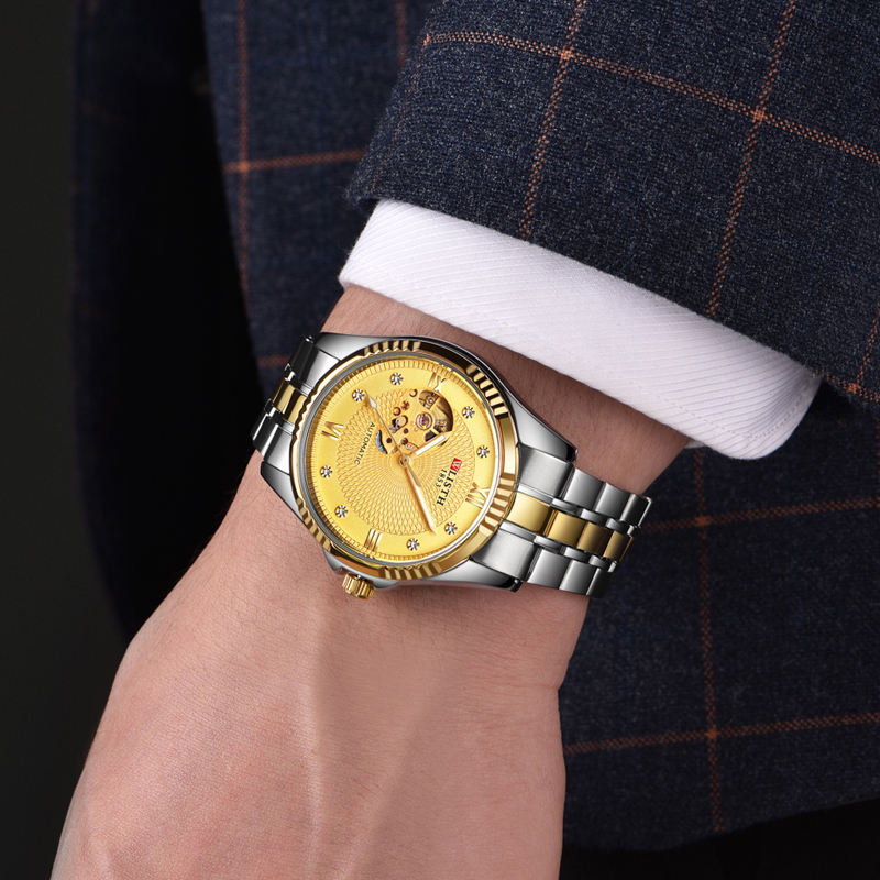 นาฬิกาข้อมือผู้ชายสุดหรู ดีไซน์คลาสสิก แฟชั่น โครงสร้างโปร่งใส กันน้ำ เรืองแสง ระบบกลไก พร้อมโลโก้สั่งทำพิเศษ