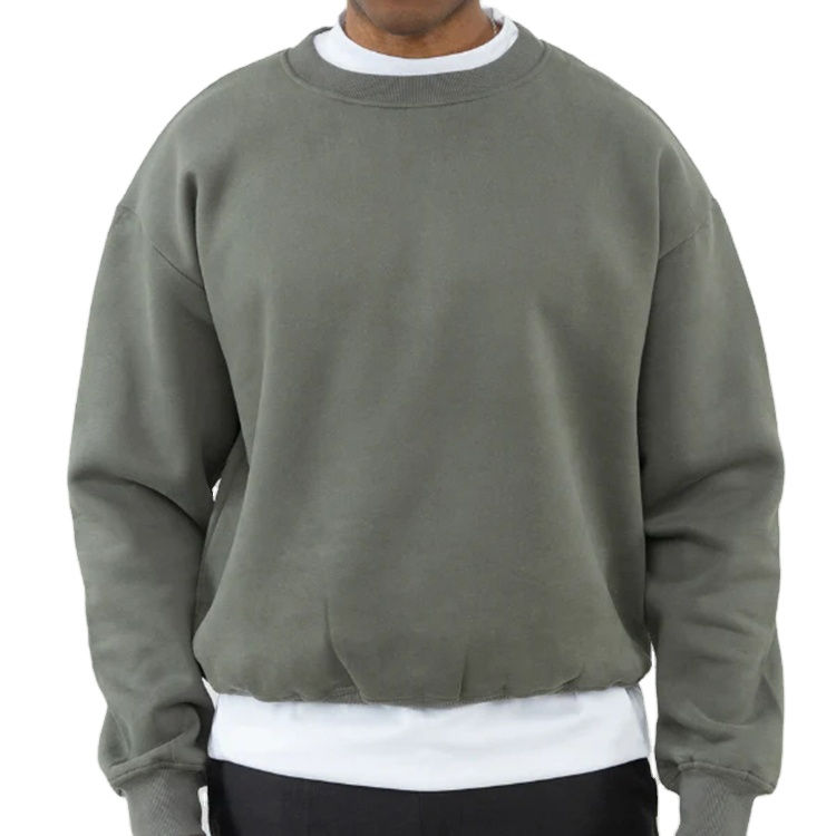 เสื้อสเวตเชิ้ตคอกลมผ้าฝ้ายล้างสีพร้อมโลโก้แบบกำหนดเอง ทรงโอเวอร์ไซส์ ไหล่ตก หนานุ่ม สำหรับผู้ชาย ปี 2026