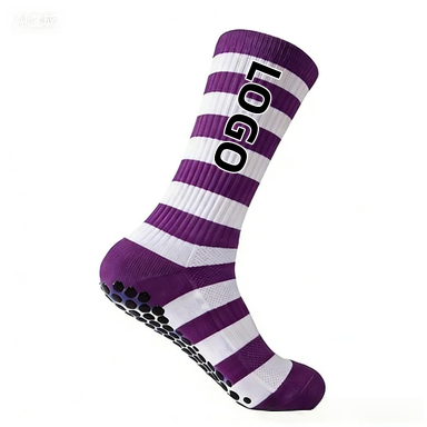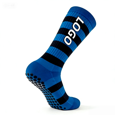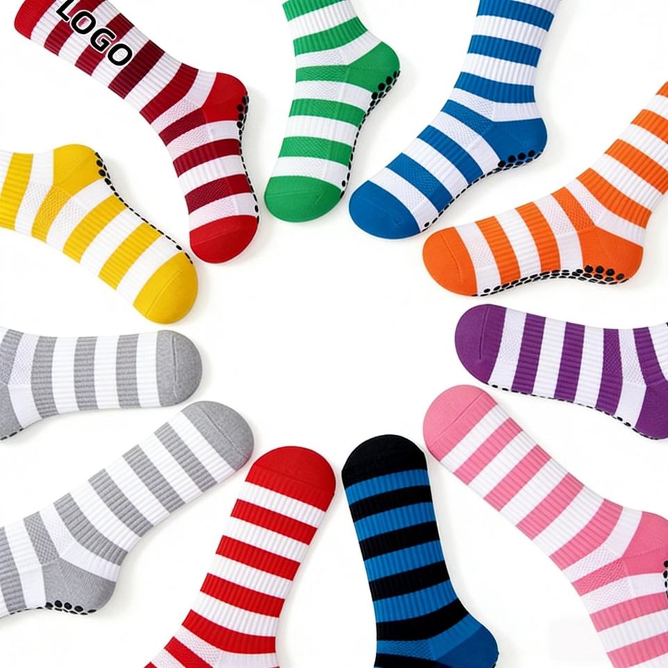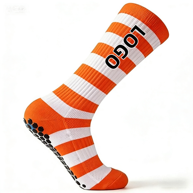 ถุงเท้ากีฬาลายทางกันลื่นสำหรับฝึกซ้อมฟุตบอลพร้อมโลโก้แบบกำหนดเอง