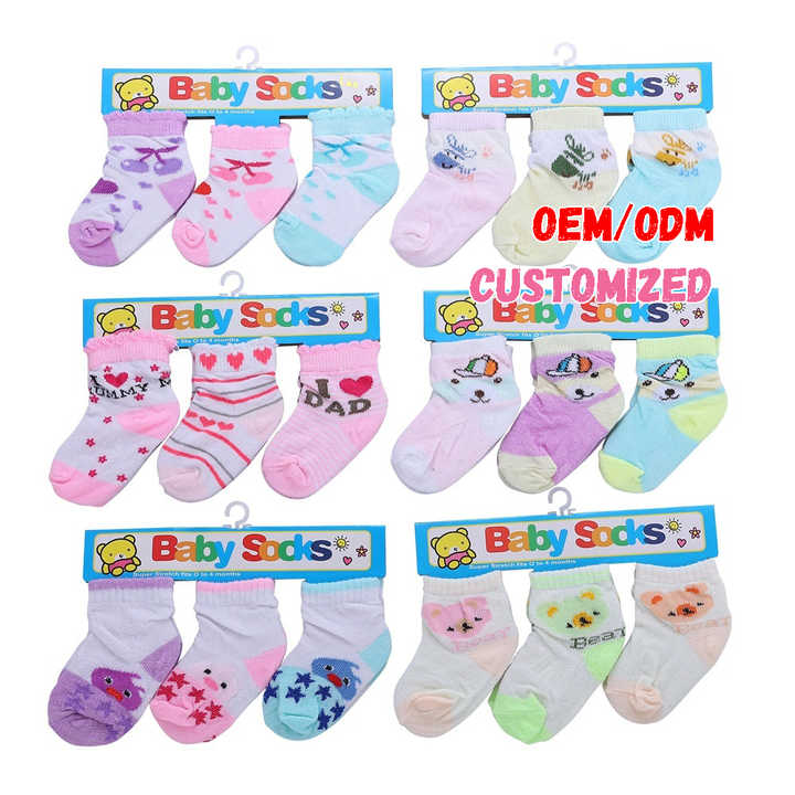 ถุงเท้าผ้าฝ้ายออร์แกนิคลายการ์ตูนน่ารักสำหรับเด็กสีขาวออกแบบได้ตามต้องการโลโก้ได้ตามต้องการ