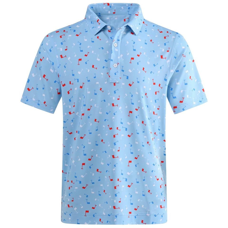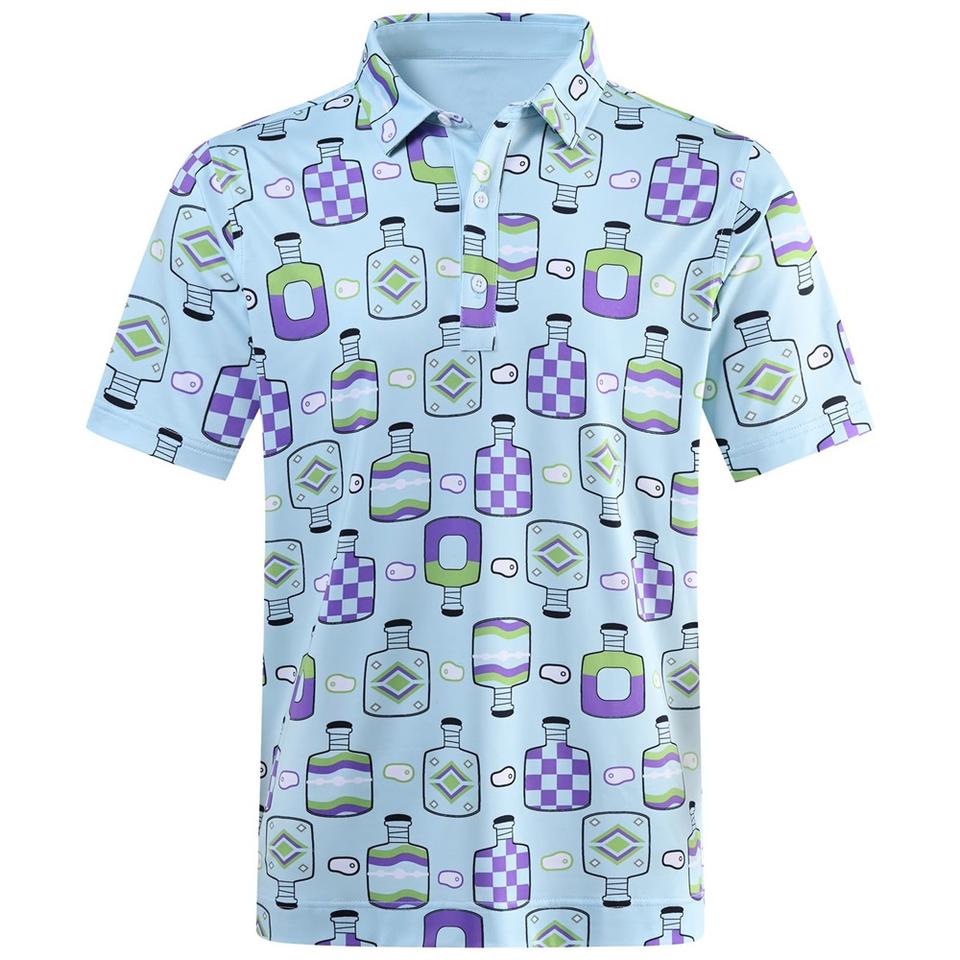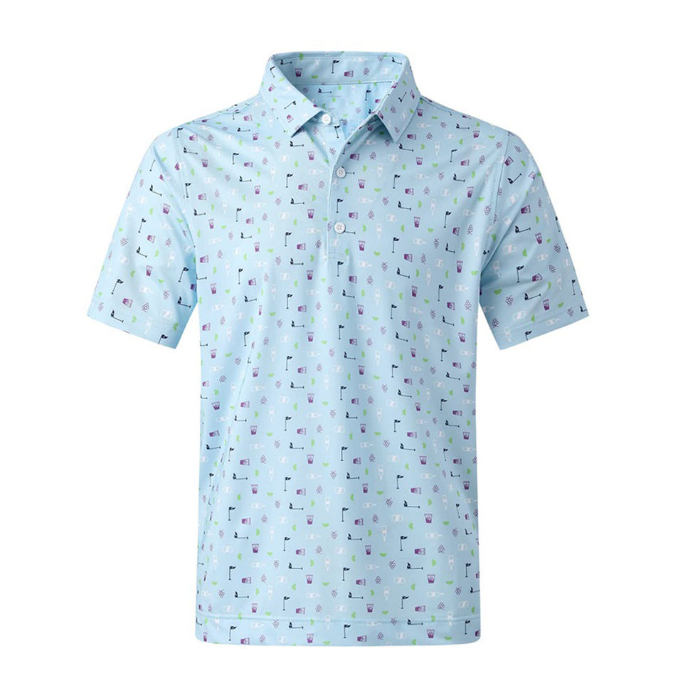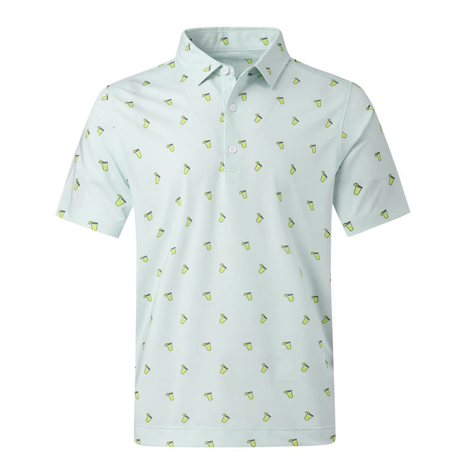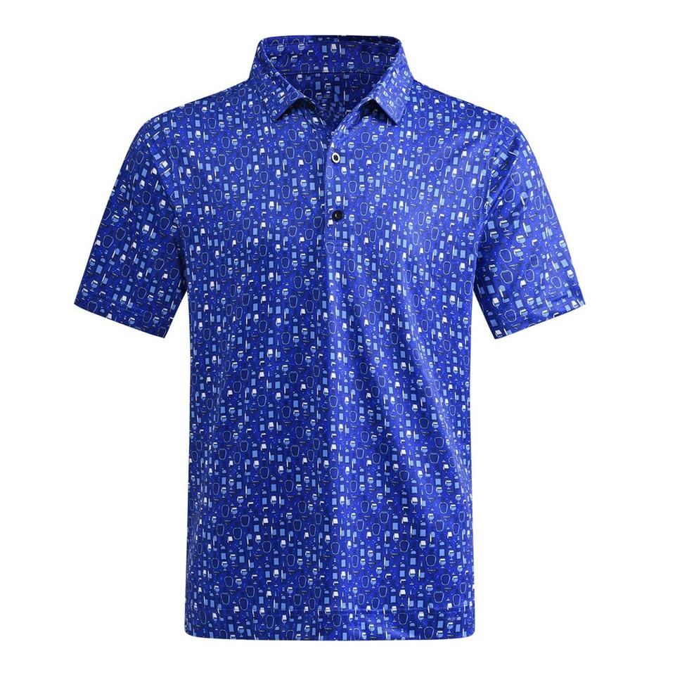 เสื้อโปโลแบบเข้ารูปผ้าไนลอนสแปนเด็กซ์สำหรับผู้ชายพิมพ์ลายซับลิเมชันเป็นมิตรกับสิ่งแวดล้อมโลโก้ตามสั่ง