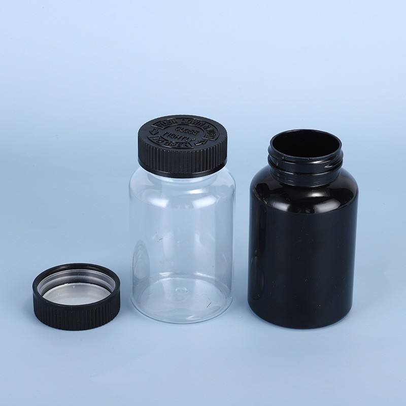 อาหารเสริมสีดำแบบเปล่ามีฝาปิดสำหรับเด็กขวดแคปซูลอาหารเสริมวิตามินบรรจุภัณฑ์ยา