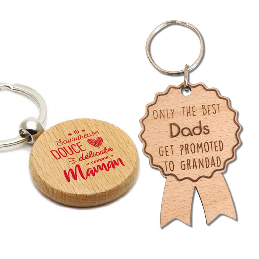 พวงกุญแจไม้มีตราสินค้าแปลกใหม่สลักโลโก้ได้ตามต้องการ